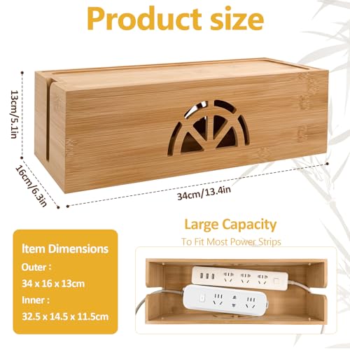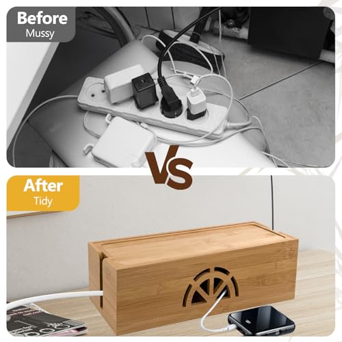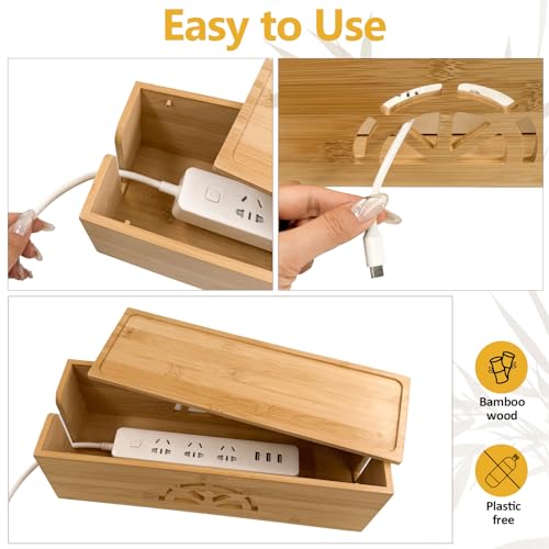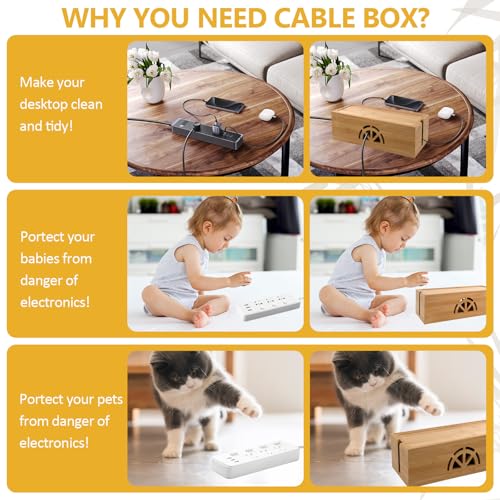 - 【KEEP KIDS AND PETS SAFE】Use this bamboo box to hide cables and cords, you can keep kids and pets away from all of your cords. By using our natural bamboo cable hider box, No more ugly & messy cords. So you and your kids will not trip over the wires anymore.