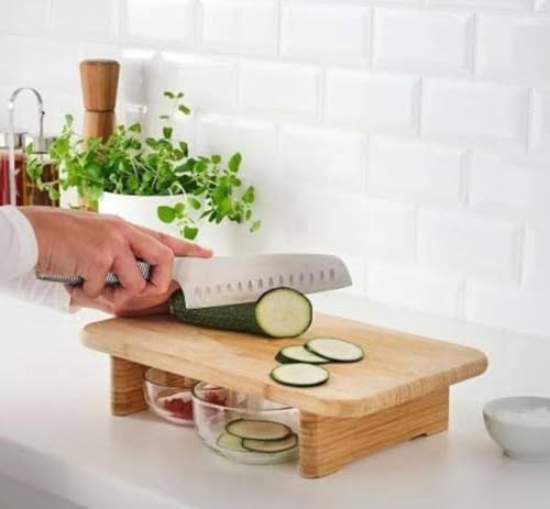 - Raised cutting board: innovative design with raised base provides convenient working space and allows containers to be placed under the board to collect food leftovers while cutting