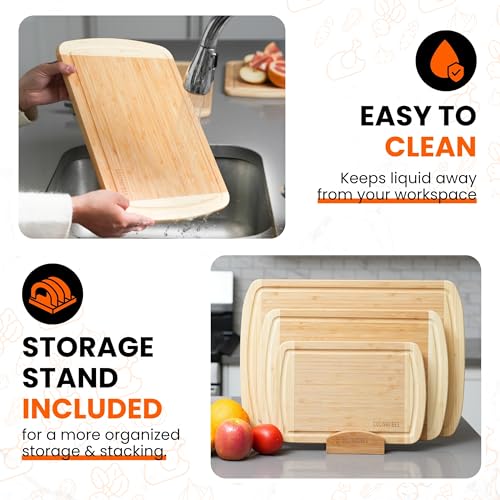 - Convenient & Thoughtful Design Comes with a handy cutting board stand and includes a bamboo cutting board set with large bamboo cutting board, large cutting boards for kitchen, metal cutting board, kitchen appliances and gadgets, meat cutting board, small cutting boards for kitchen.