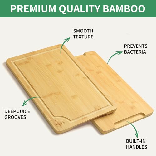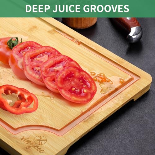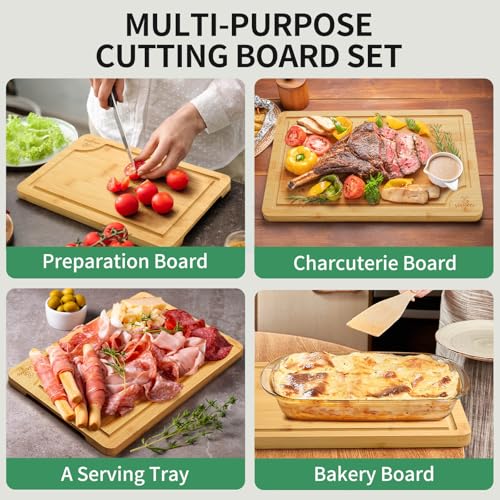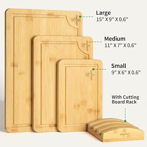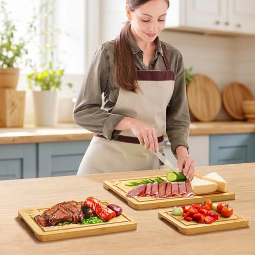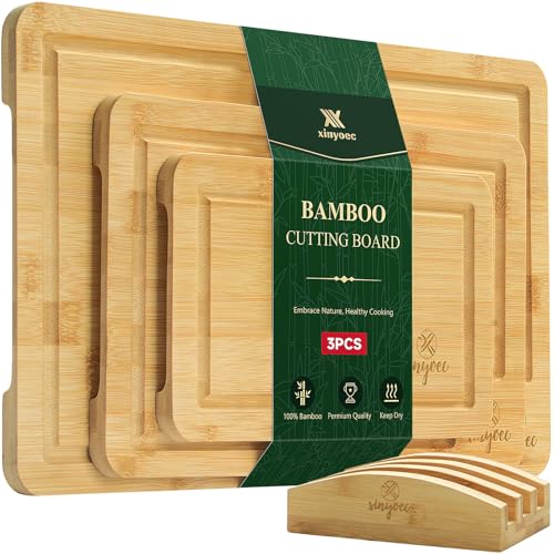 xinyoec - مجموعة الواح تقطيع من الخيزران للمطبخ - مجموعة الواح تقطيع من 3 قطع مع اخدود ورف لوح تقطيع، سهلة التنظيف، مثالية لتقطيع اللحوم والخضروات والفواكه والجبن