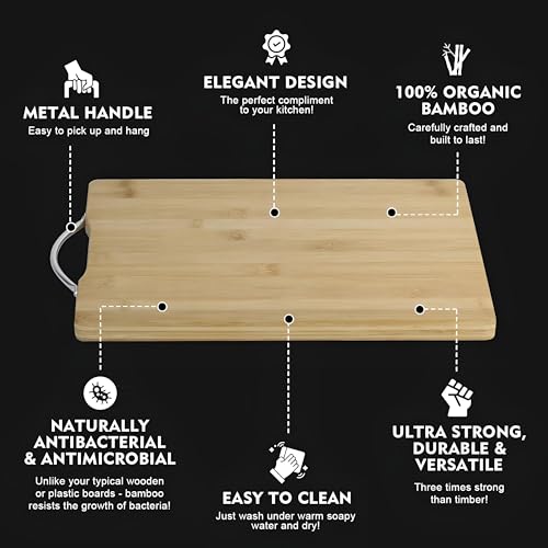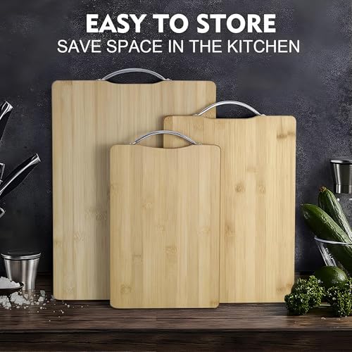 Generic - Bamboo Cutting Set - Set of 3 Natural Bamboo Cutting Board with Waterproof Stainless Steel Handles, High Quality, 3 Different Sizes for Modern Kitchens