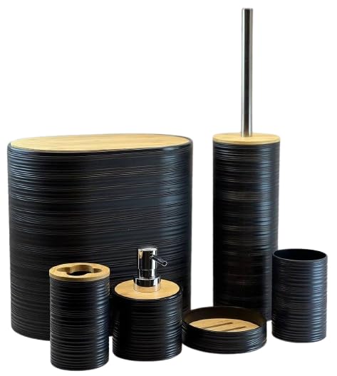 Generic - Bamboo Elegance 6 in 1 Oval Bathroom Set - Luxurious Touch and Organization for Your Bathroom K (Black)