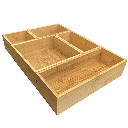 Simhoo - طقم منظمات صناديق الخردة والفواصل المصنوعة من البامبو، صينية تنظيم أقسام لتخزين الأدوات للحرف اليدوية والخياطة والمكتب والحمام والمطبخ