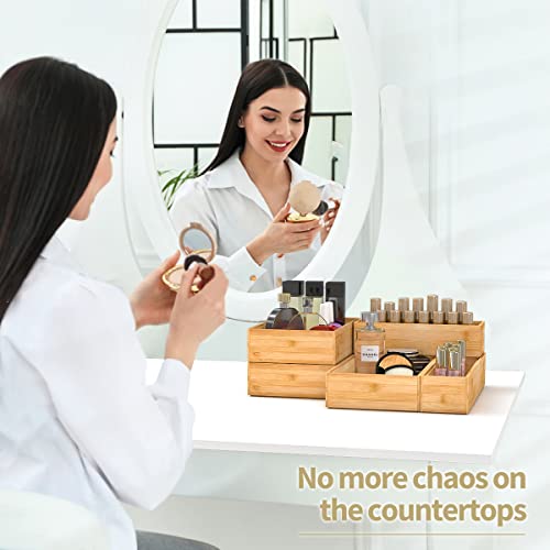 Bambloom - Bamboo Kitchen Drawer Organizer,Stackable Silverware Tray Utensil Organizer Cutlery Holder for Kitchen,Wooden Storage Box for Bathroom, Multi-Use Storage Bins Boxs Dividers for Office(9x6x2.5 inch)