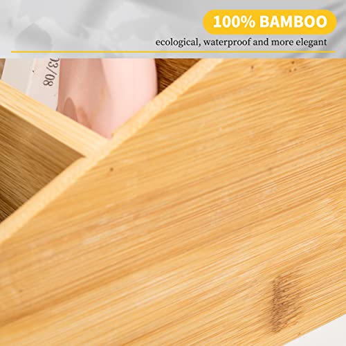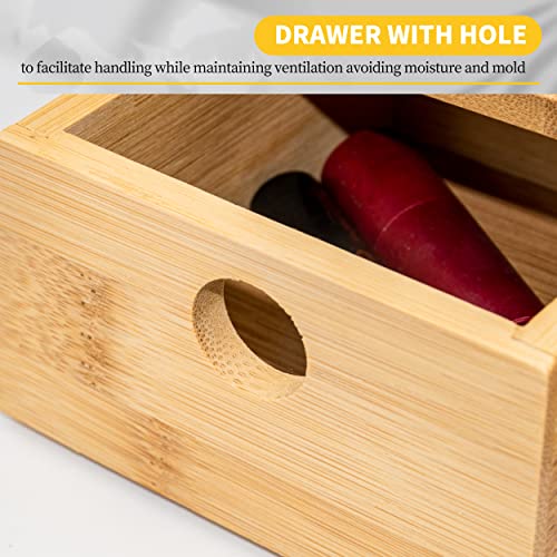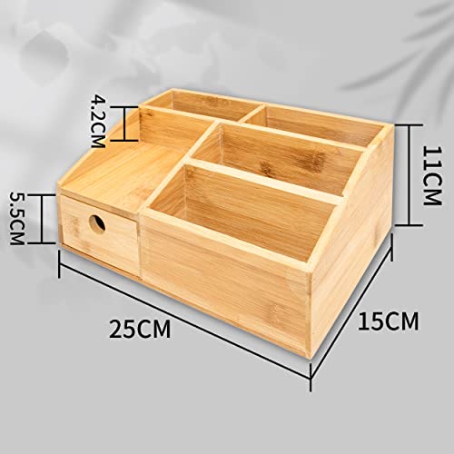 BESCH - Bamboo Kite Organizer with Dividers and Drawer 25 x 15 x 11 cm - Makeup Storage Box - Desk Organizer