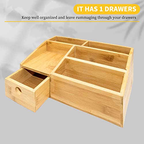 - Desk Organizer with Dividers and a Drawer 100% Bamboo