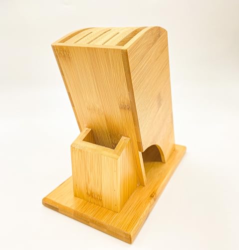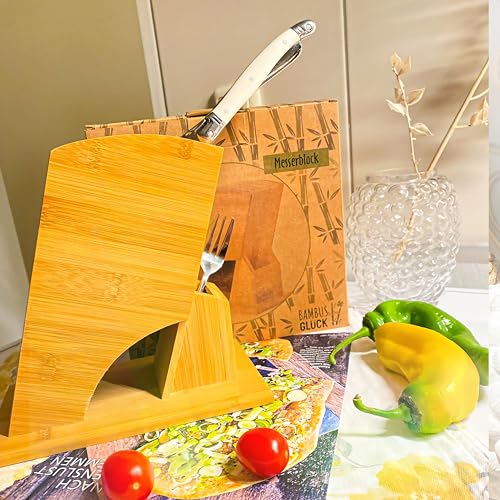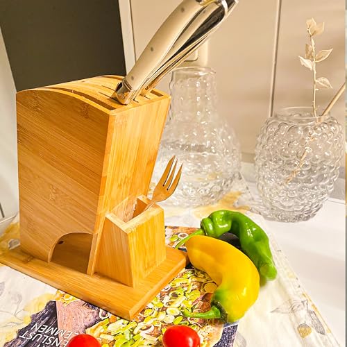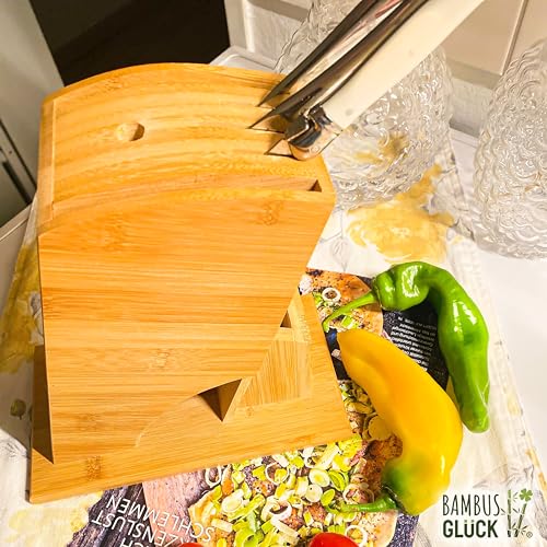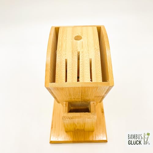 Bambusglück - Bamboo Knife Block Universal Knife Blocks & Storage Holder 6 Slots Knife Holder without Knife + 1 Scissors Rack