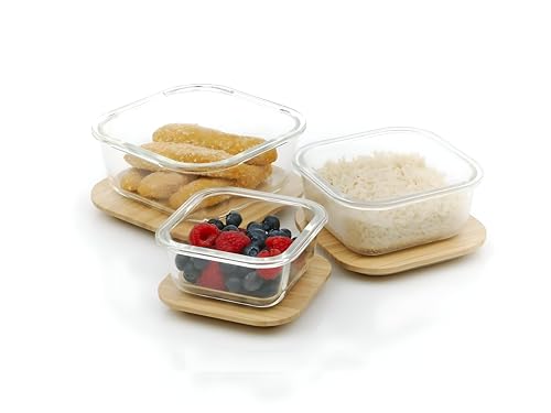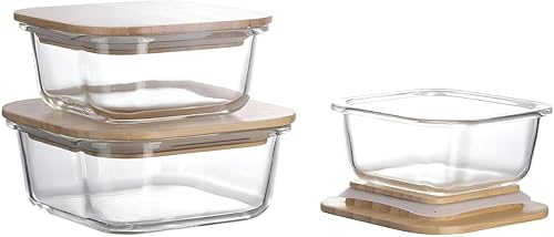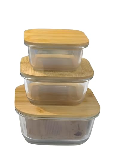 Generic - Bamboo-Lidded Glass Containers - Clear Borosilicate, 3-Piece Set for Meal Prep, Leakproof, Microwave and Dishwasher Safe (Option 2)