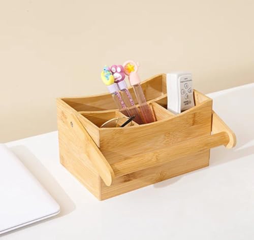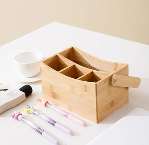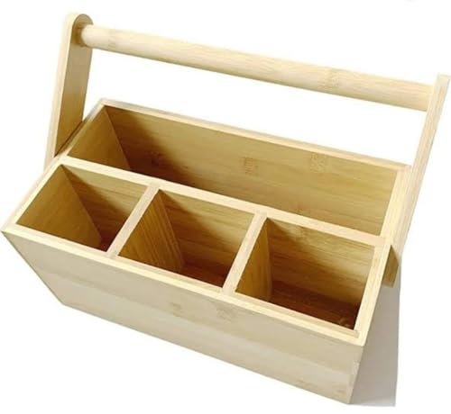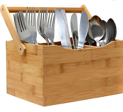 - MULTI-USE DESIGN: Wooden organizer box with portable handle has 4 separate compartments to organize cutlery, knives, forks, spoons or pencils and office supplies