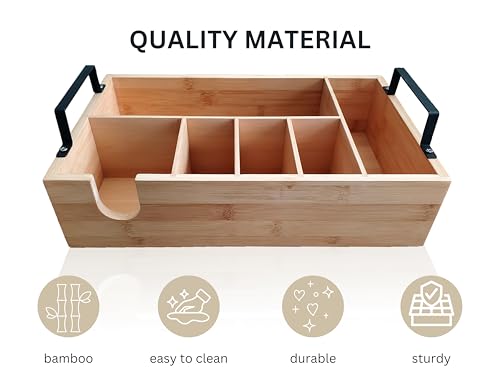 - 【منظم متعدد الاستخدامات】 يمكن لمنظم الخيزران هذا تخزين الأطباق الورقية أو الأواني أو الأكواب أو مستحضرات التجميل مثل المكياج وطلاء الأظافر والفرش. يمكنك أيضًا استخدامها للحفاظ على مكتبك أو فصلك الدراسي مرتبًا مع ستة مساحات تخزين لعناصر مثل الورق والنوت بوك والأقلام وأقلام التحديد وموزعات الأشرطة.