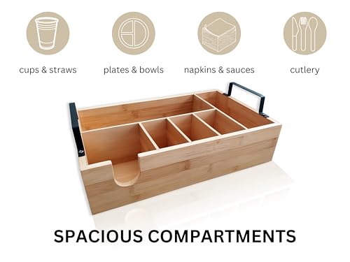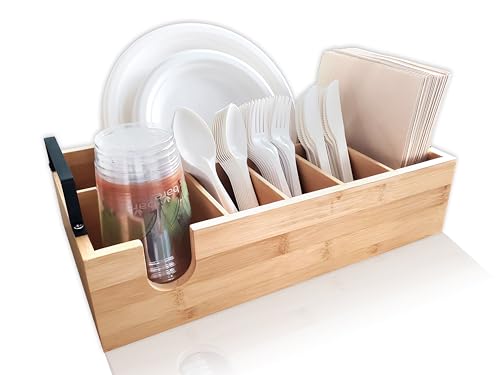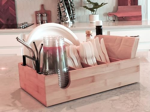 RILIA Housewares - علبة اطباق ورقية من الخيزران، حامل ادوات طعام، موزع اطباق ورقية، منظم للمنزل والمطبخ، مستلزمات التخييم ومستلزمات الحفلات، علبة النزهات، الشواء، فكرة هدية، الانتقال لمنزل جديد، مستحضرات التجميل