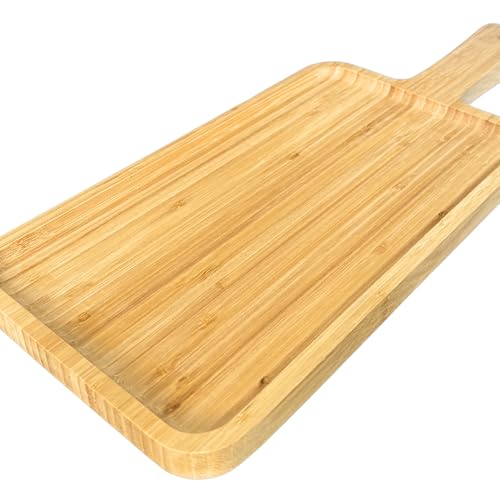 THY COLLECTIBLES - Bamboo Serving Board with Handle – Charcuterie Board for Serving Bread, Meat, Fruits, and Cheese – Kitchen Cutting Board Serving Tray Hanging Cutting Board Décor (L15.75" x W6.25")