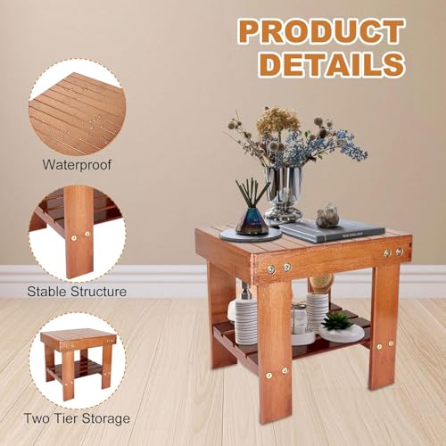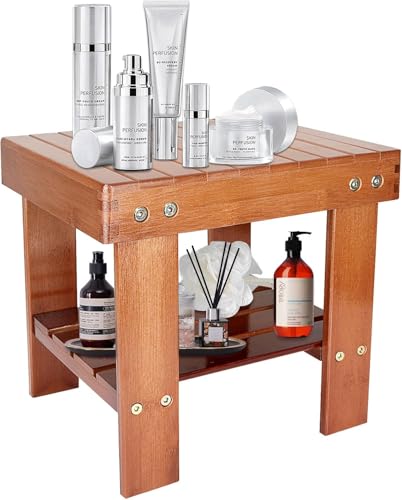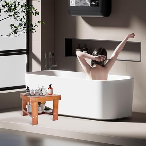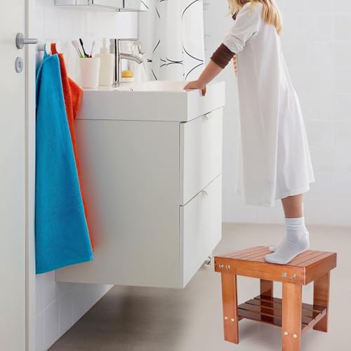 Uhuan - مقعد استحمام من الخيزران مع رف تخزين، مقعد استحمام مضاد للانزلاق للقدم، مقعد خشبي للاطفال والحمام والمساحات الصغيرة وجانب السرير | الحضانة والمدرسة (احمر خشبي)