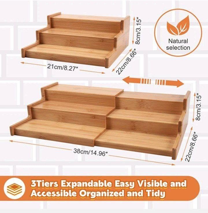 - منظم برطمانات البهارات والتوابل المصنوع من خامة خشب البامبو عالي الجودة.