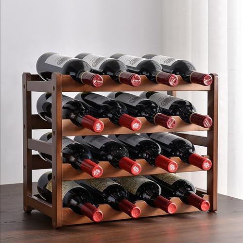 SCONVU - رف مشروبات من الخيزران، رف خزانة تخزين يوضع على سطح المطبخ، حامل مشروبات المؤن (4 طبقات 16 زجاجة)