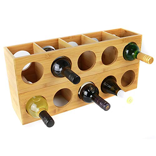 - Bamboo Wine Rack Wall Mounted 5 Bottle Holder Stand Wooden Pre-Assembled Wine Shelf Cabinet Stackable Modular Design M&W