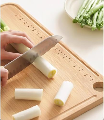 - 【HIGH QUALITY BAMBOO WOOD MATERIAL】Made of durable and natural bamboo wood that resists scratches, moisture and keeps knives sharp, making it a reliable tool for everyday use, ensuring you a healthy and safe experience of preparing all kinds of vegetables and fruits without any damage or loss of quality.