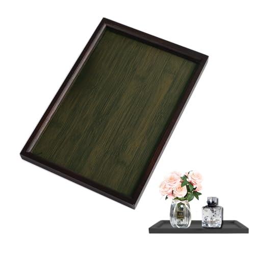 Linwnil - Bamboo Wood Decorative Tray,Coffee Table Serving Tray Platter- Rustic Farmhouse Decorative Centerpiece for Living Room, Kitchen, Dining Table, Home Decor (Brown, 11.02"x7.48"x1.02")