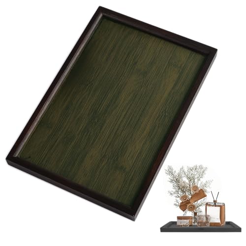 Linwnil - Bamboo Wood Decorative Tray,Coffee Table Serving Tray Platter- Rustic Farmhouse Decorative Centerpiece for Living Room, Kitchen, Dining Table, Home Decor (Brown, 16.14"x11.42"x1.02")