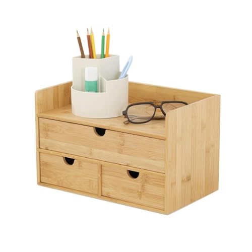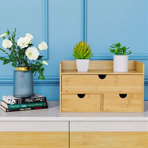 Truffleaholic - منظم مكتب من الخيزران والخشب أدراج تخزين للمكتب مع للمنزل مصنوع البامبو علوية للطاولة مستلزمات الزينة المنزلية لا يحتاج إلى تجميع 3 قطع