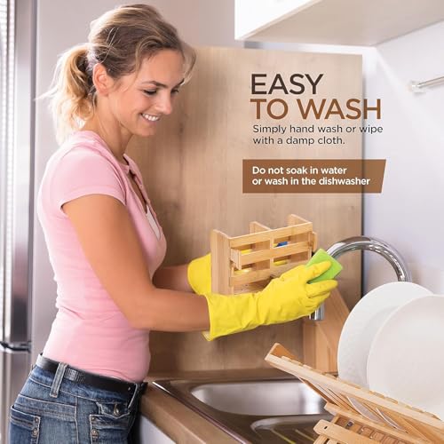- ✅【متانة وجودة استثنائية】صُنعت الصفاية من خشب بامبو معالج بعناية فائقة لضمان القوة والمتانة العالية لتحمل الاستخدام اليومي المكثف بجانب الحوض دون أي تشقق أو تلف، مع الحفاظ على المظهر الطبيعي والتشطيب الأنيق، مما يجعلها أداة أساسية لتنظيم أدوات المطبخ بكفاءة وراحة ويضيف قيمة عملية وجمالية مستمرة لمطبخك اليومي. 🏡