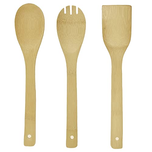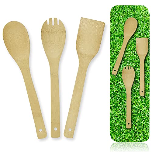 Generic - Bamboo wooden cooking set, Bamboo wooden spoons for cooking, bamboo wooden spoons, bamboo wooden utensils, wooden spoons, spatula and fork, 3 pieces for cooking