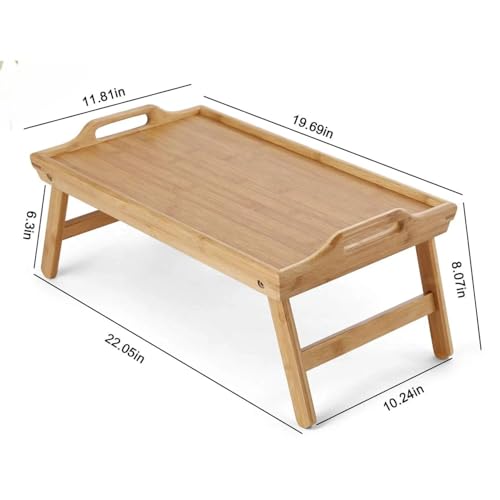 Bamboostan - Natural Bamboo Bed Table – Folding Serving Tray for Breakfast, Snacks, or Laptop Use
