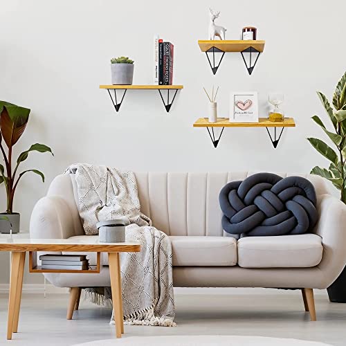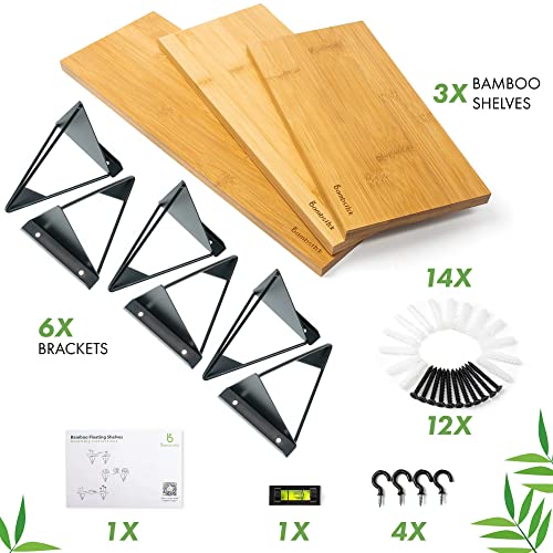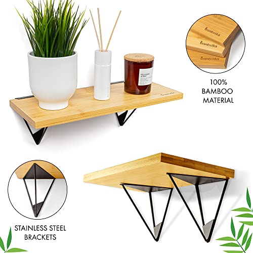 BAMBSTICK - Floating Shelves Wall Mounted Set of 3, Modern Bamboo Wall Shelves for Bedroom, Living Room, Bathroom, Kitchen, Office, Storage Home Decor Floating Shelf, Book Shelves