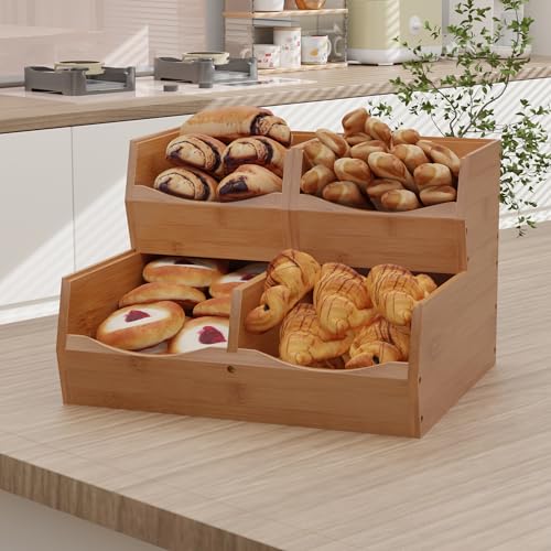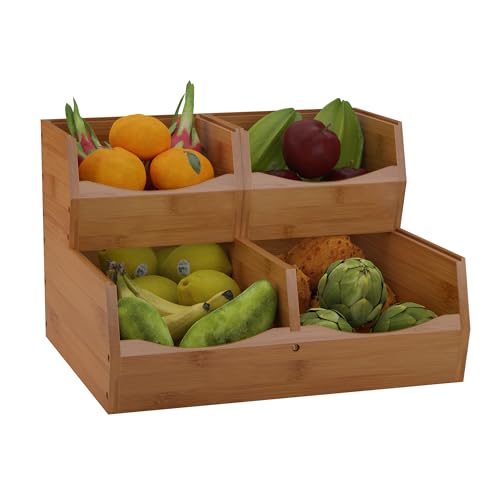 - USE IN KITCHEN: Stylish 2-tier stackable storages for fresh fruits, potatoes, onions, coffee/tea supplies, or variety of storage purposes.
