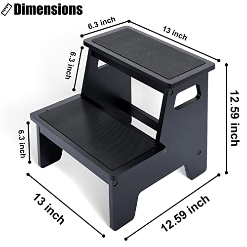 BAMGROW - مقعد خشبي للاطفال الصغار في الحمام والمطبخ وحوض الاطفال من خشب الخيزران لتدريب الاطفال على استخدام النونية، مقعد للمرحاض، اسود