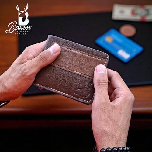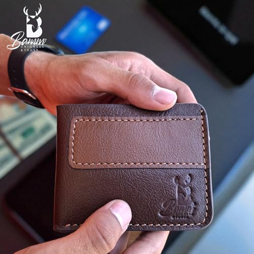 Bamm - "Bamm" Genuine Leather Men's Wallet - Slim Compact Wallet with 8 Card Pockets and Money Pocket - Stylish and Practical Design. (2211) (brown)