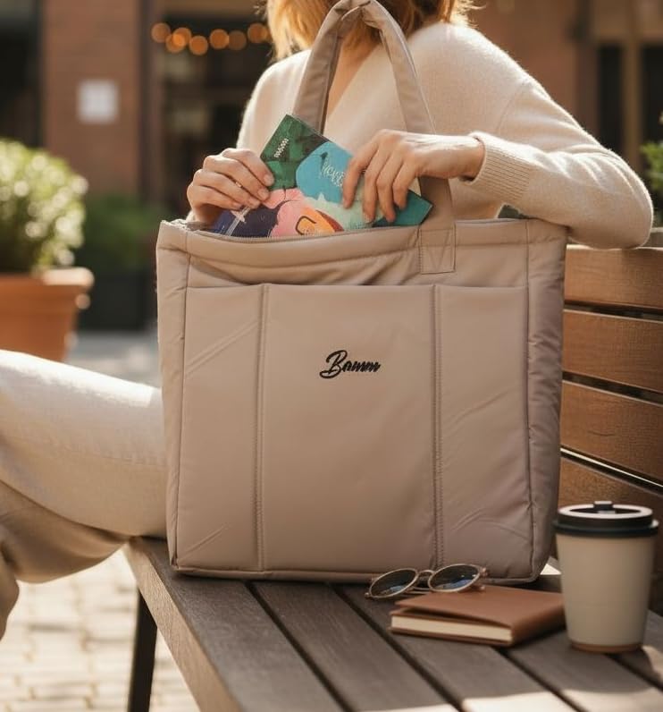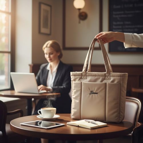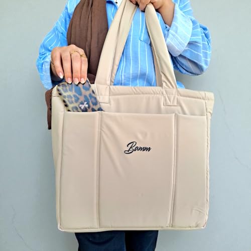 Bamm - شنطة لابتوب نسائية كبيرة من BAMM، بتصميم مبطن ومتين، 4 أقسام للتنظيم، مناسبة للعمل والجامعة والسفر حقيبة كتف أنيقة للنساء