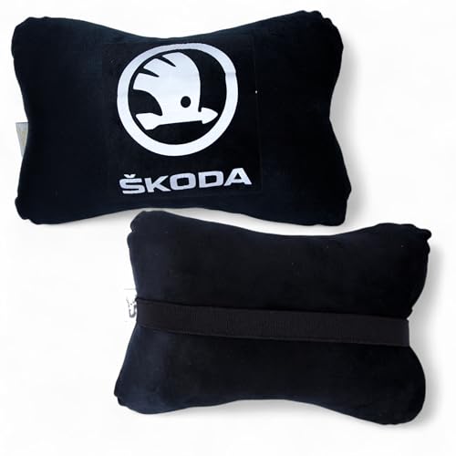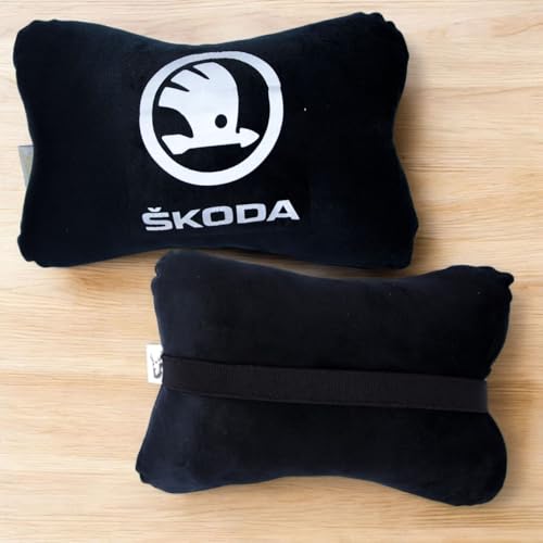 Bamm - BAMM Universal Car Headrest Pillow, Soft Neck Pain Relief and Support Pillow with Comfortable Straps for All Car Seats and Driving Seat, Travel Pack of 2 (Black, Plush Material) (SKODA)