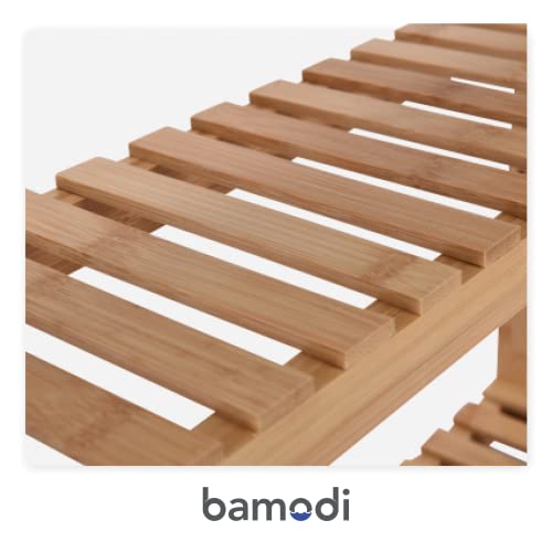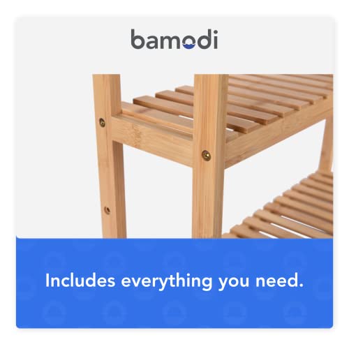 Bamodi - Bamodi Bamboo Corner Bookcase - Multi-Shelves Bathroom Rack - Open Shelf Organizer for Kids Bedroom, Living Room, Office, Kitchen - Standing Storage Display Shelf for Towel, Book, Ornamental Decor