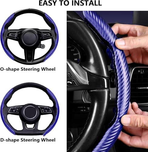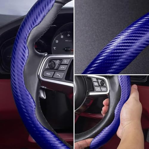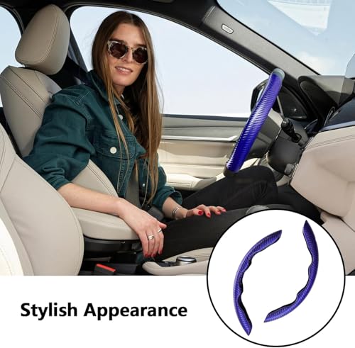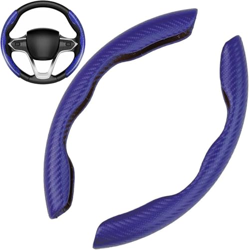 Bamyli - غطاء طارة دركسيون من ألياف كربونية بتصميم مقسم مضاد للانزلاق من باميلي، ملحقات للمركبات والسيارات والشاحنات من قطعتين (أزرق)