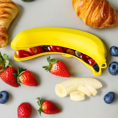 Generic - صندوق تخزين الفاكهة على شكل موزة - حافظة محمولة امنة للطعام للموز والعنب والكرز والفراولة والحلوى - متينة وخفيفة الوزن ومثالية للمدرسة والعمل وصالة الالعاب الرياضية (قطعتين)
