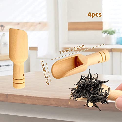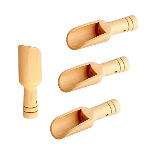 Bansusu - مجموعة معالق خشبية صغيرة للملح والتوابل من بانسوسو، مقاس 7.4 سم من الخشب الطبيعي للمطبخ وأملاح الاستحمام والبودرة والشاي والمزيد، صديقة للبيئة وسهلة التنظيف، 4 قطع