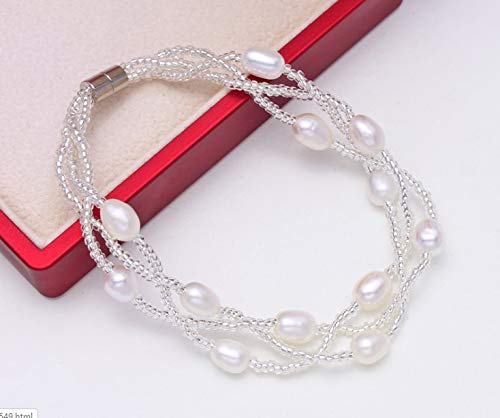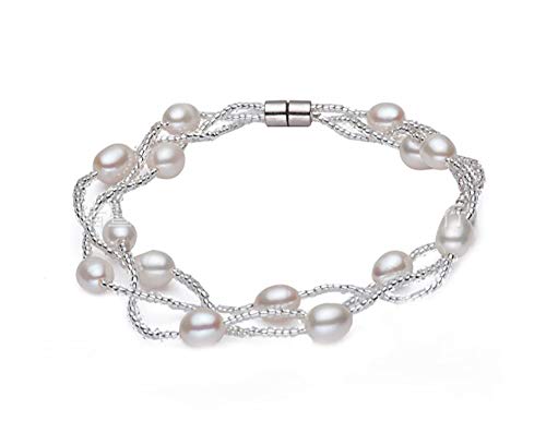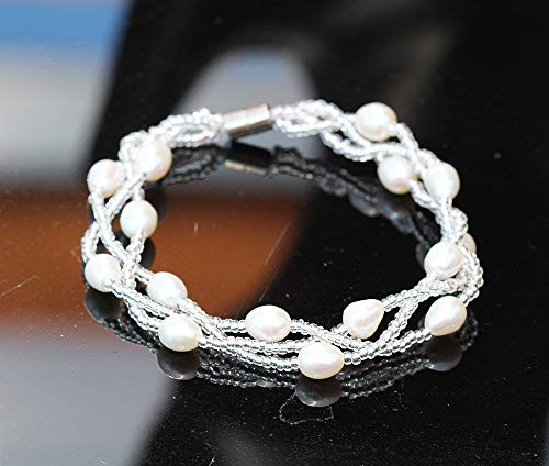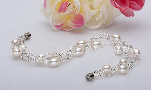 baobei - baobei Hand Made Silver Freshwater Pearl Magnet Buckle Bracelets for Women