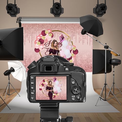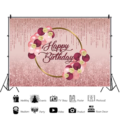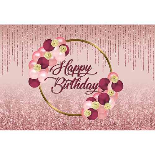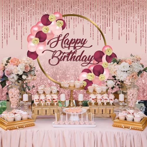 Baocicco - خلفية عيد ميلاد، بالونات ولافتة عيد ميلاد بشراشيب لامعة، خلفية تصوير لحفلات أعياد الميلاد السادسة عشرة والثامنة عشرة والثلاثين والأربعين للفتيات والسيدات من باوسيسكو، 91 سم × 1.52 م، ذهبي ووردي
