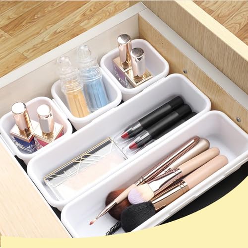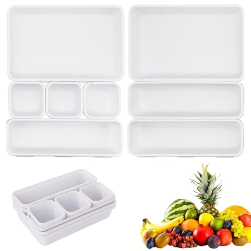 BAOWUABJ - منظم أدراج من BAOWUABJ، قابل للتعديل، باللون الأبيض، مصنوع من البلاستيك PP، قابل للتكديس والتشابك، مجموعة من 8 قطع