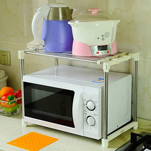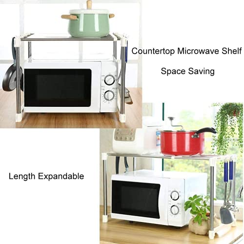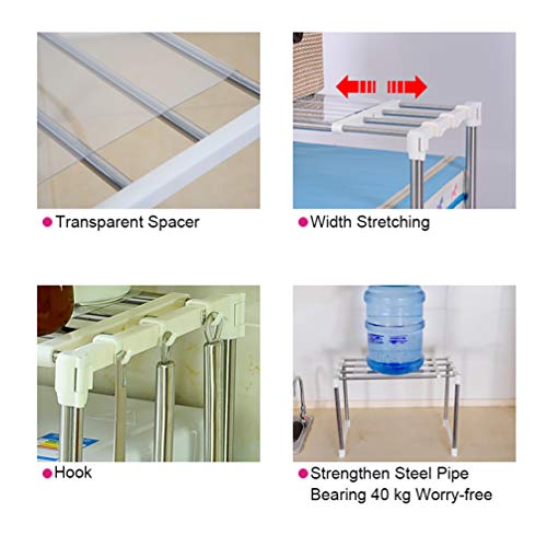 BAOYOUNI - BAOYOUNI Kitchen Microwave Oven Rack Shelving Unit Stainless Steel Storage Shelf Stand Expandable Length 6 Hooks with 1-Piece 25 x 35cm Transparent Shelf Liner
