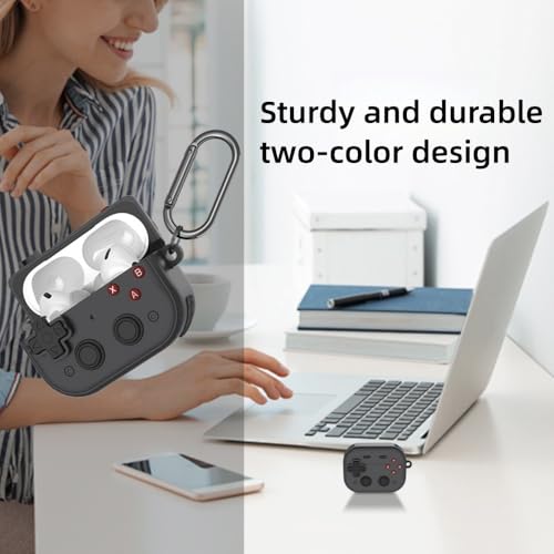 BAQIEJY - حافظة حماية صلبة من البولي يوريثين الحراري بتصميم كلاسيكي محمول باليد لجهاز تشغيل العاب الفيديو الرقمية ايربودز برو 2 (2023/2022/2019، الجيل الثاني/الاول)، متوافقة مع ماج سيف، اسود من باكيجي