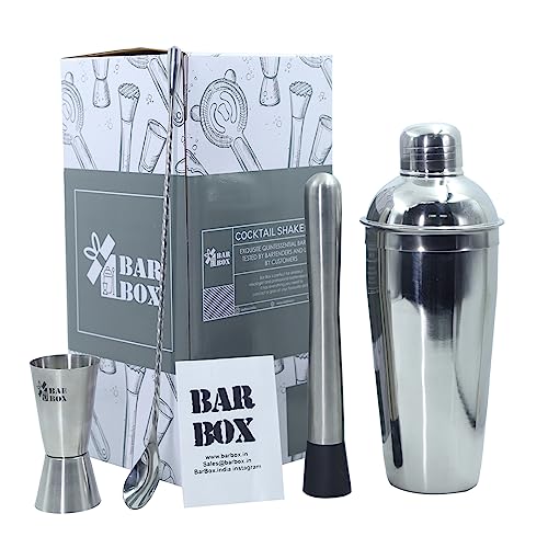 Bar Box - Bar Box 4 Piece Bartending Kit, Cocktail Shaker with Mixer Tools, Accessories for Drinks for Men, Whiskey Lovers, Dad, Wedding Couples, Birthday, Anniversary, Boss, Portable Drink Setup