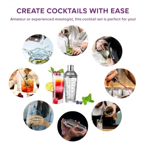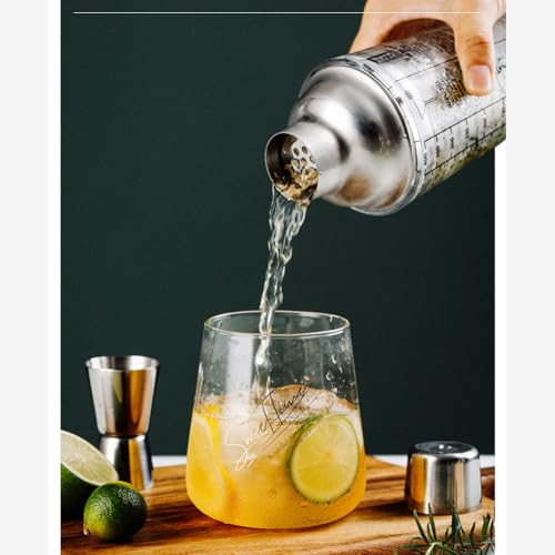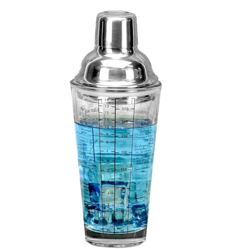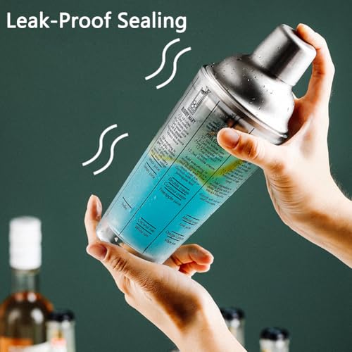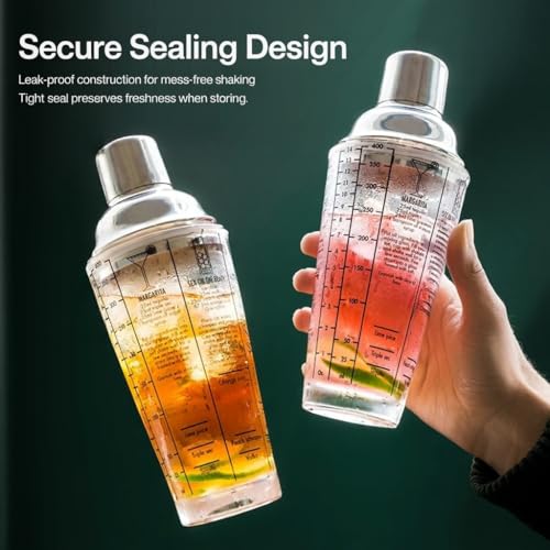 EDOTFISH - كوب شيكر كوكتيل من زجاج مارغريتا ومارتيني بسعة 14 اونصة مع وصفات وموازين للقياس، اداة خلط المشروبات الشفافة للسقاة