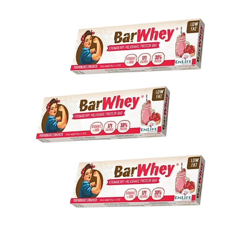 Bar Whey - بروتين عالي البروتين ومنخفض الدهون ومحسن الأداء بنكهة الفراولة والميلك شيك (3 بار) من بار واي بار، لوح البروتين الوحيد للنساء، فيتامين C والحديد، سعرات حرارية منخفضة، غني بفيتامين C