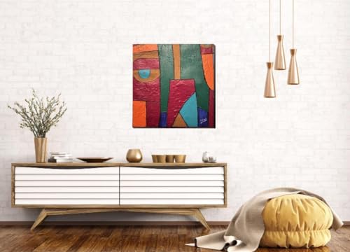 Generic - لوحة فنية يدوية من الاكريليك الاصلي "Cubist Mirage" على قماش (40 × 40 سم) | لوحة فنية جدارية تجريدية عصرية منسوجة للغاية | ديكور هندسي يدوي الصنع