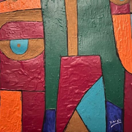 - نمط تكعيبي جريء: مستوحى من التكعيبية، يتميز بتجريد هندسي قوي وكتل متشابكة من الألوان المتباينة.