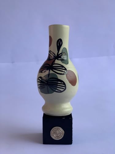 Generic - Barati Art | Hand Painted Pottery Vase (Medium) - Pale Yellow Abstract Spots & Black Leaf Motif - Egyptian Artisan - Nordic/Eclectic Desk Decor on wooden base