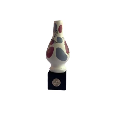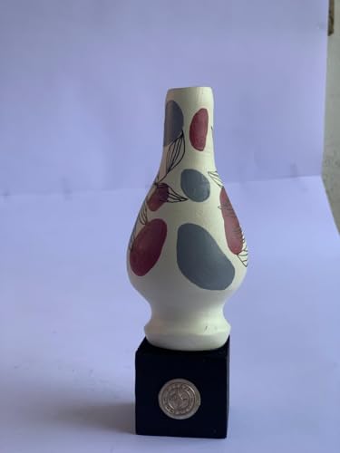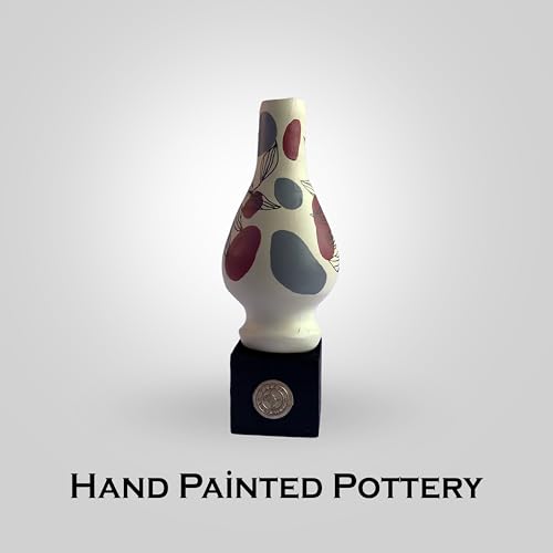 Generic - مزهرية فخار مرسومة باليد متوسطة الحجم من باراتي ارت - بقع تجريدية بيضاء وزخارف ورقة سوداء - منحوتة سيراميك مصرية حرفية - ديكور مكتب