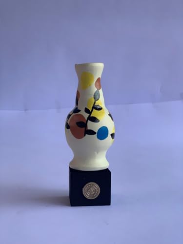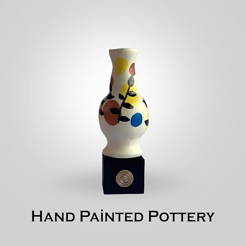 Generic - مزهرية فخار مرسومة باليد من باراتي ارت (صغيرة) - ابيض مع بقعة تجريدية ملونة وزخارف اوراق شجر - سيراميك مصري اصلي - ديكور مكتب انتقائي